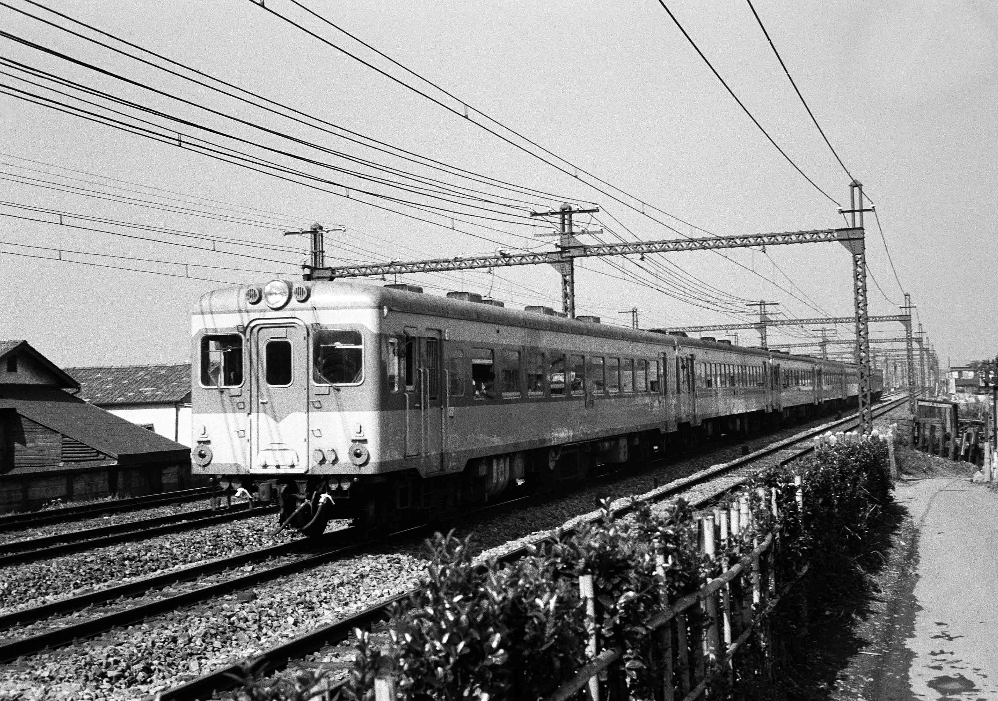 コメント: 1962年10月、登場間もないディーゼル急行アルプスが轟音を響かせて中野駅へ向かって走っていった。東京オリンピック前の昭和時代の沿線光景。