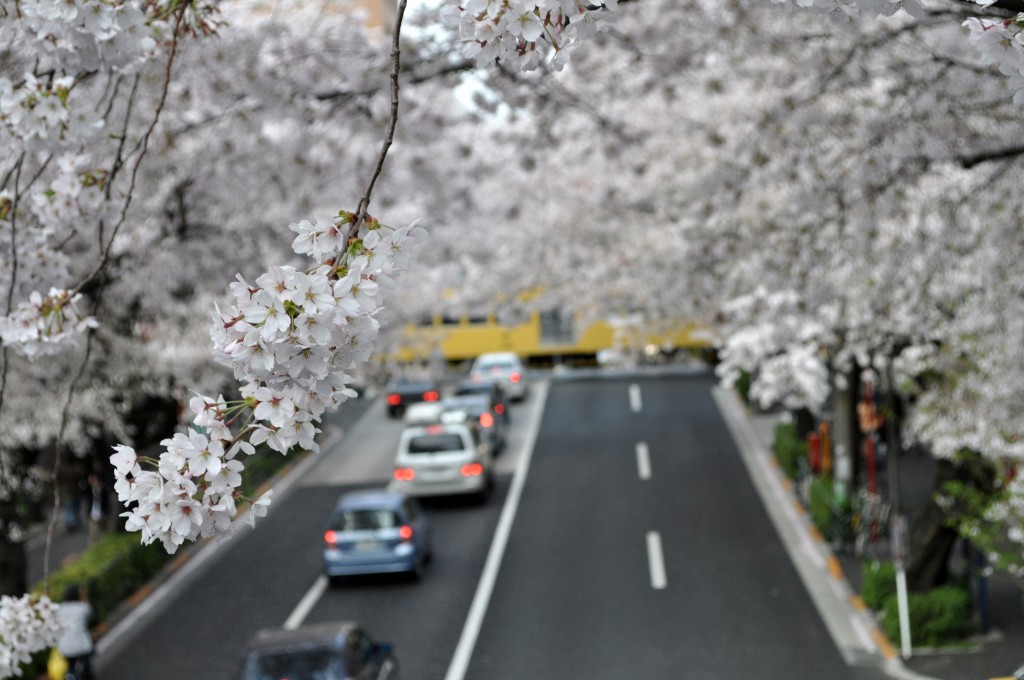 コメント: 中野通りをバックに、咲き誇る桜をパチリ